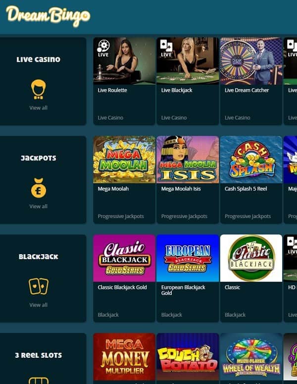 You can also take to Dream Bingo’s casino to play hundreds of slots, in addition to their Live Casino that offers more traditional table games.